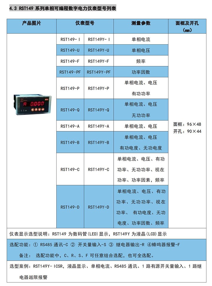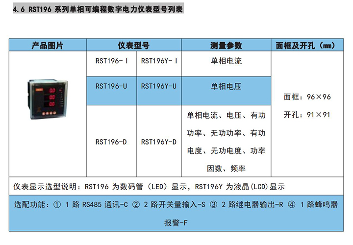 RST1 系列可編程數(shù)字電力儀表,適用于各變配電系統(tǒng),測(cè)量和顯示線路電流、電壓、有功功率、無(wú)功功率、功率因數(shù)、有功電